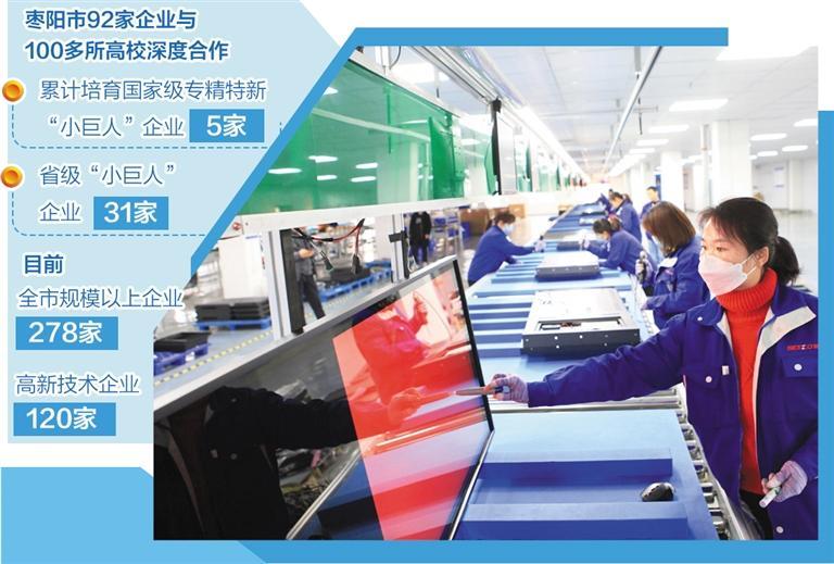 枣阳市实施创新型领军企业培育行动、高新技术企业“倍增计划”、科技型中小企业成长行动,让全市92家企业与100多所高校深度合作,引进高技能人才13000多人,60多项科研成果从实验室走向生产线。累计培育国家级专精特新“小巨人”企业5家、省级专精特新“小巨人”企业31家,“枣阳经开区汽车新材料创新型产业集群”成功获批省级创新型产业集群。