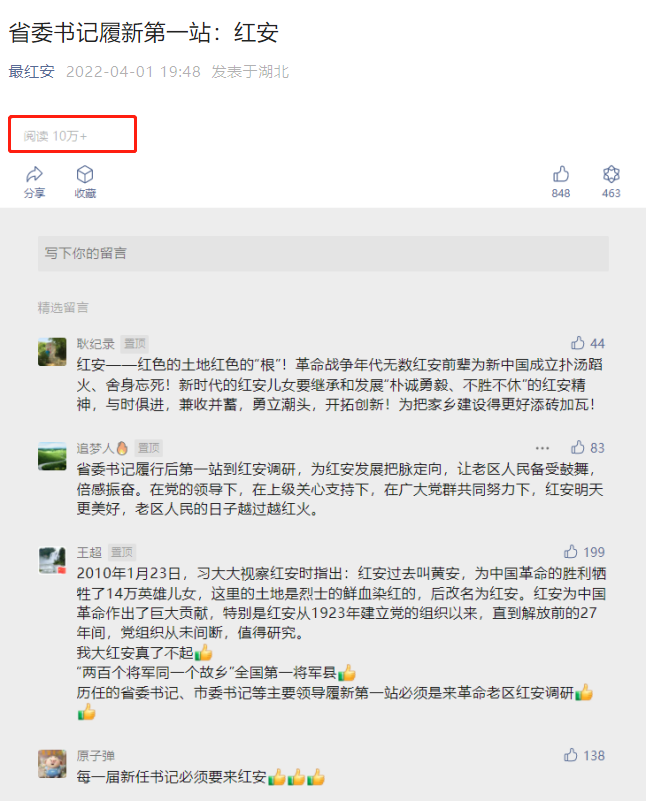 酒香也怕巷子深。黄发成说,红安融媒团队时常挂在嘴边的一句话是“自己的孩子自己爱。”为了让作品得到最大程度的推广和传播,他们采取“两条腿走路”策略,一方面主动联动上级媒体和宣传部,积极荐稿,另一方面做好内部动员,发动全中心成员点赞、转发、留言互动,主动扩圈,通过社交传播让作品出圈。