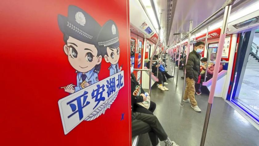 在表达形式上,以创意驱动带动多轮传播,通过制作创意海报、手绘漫画、趣味H5等增强推文的可读性和吸引力,并同步统筹线上线下活动吸引年轻用户关注,扩大用户触达面。如2022年1月,在第二个中国人民警察节来临之际,湖北省公安厅联合武汉地铁集团在武汉市地铁客流量最高的2号线开设“平安湖北”专列,向群众宣传反诈、交通、110报警、公安政务一网通办等公安警务资讯和便民服务措施,车厢内的标语、海报、展板等青春时尚、网感十足,让人眼前一亮。同时,团队还通过“抖音”平台对此次“平安湖北”专列首发进行了直播,网友通过在线参观的方式打卡“平安列车”,纷纷打出“安全感满满”的弹幕。
