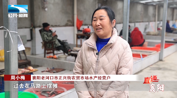 襄阳老河口市正兴街农贸市场水产经营户 周小梅:“过去在马路上摆摊,每天去拎个水都要跑好几趟,电瓶的电一旦用完,鱼就缺氧,本来是活鱼的价进的,但是都要以死鱼的价钱处理,这样经济上就受到损失,也赚不到多少钱,正儿八经说生意很难做。”