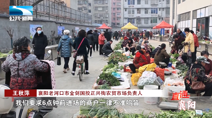 襄阳老河口市金剑国投正兴街农贸市场负责人 王秋萍:“经过跟其他部门的商议,决定里面把原有的70多个停车位铲除,改为自产自销的摊位。我们把原本露天的摊位搭建了隔热、隔音、防火大棚,这样降低周边的噪音,还能为卖菜的菜农遮风挡雨。我们要求6点钟前进场的商户一律不准鸣笛,声音大的摩托车,我们都要求熄火推车进入。”