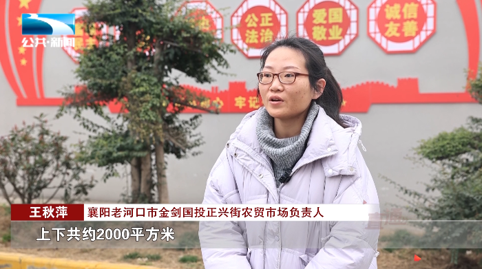 襄阳老河口市金剑国投正兴街农贸市场负责人 王秋萍:“设计为农贸市场主体,建筑为2层建筑平层,上下共约2000平方米,可容纳100商户左右,市场内其它的空间规划为停车场,可供商户以及客户停车使用,2021年初市场建成后开始试运营。”