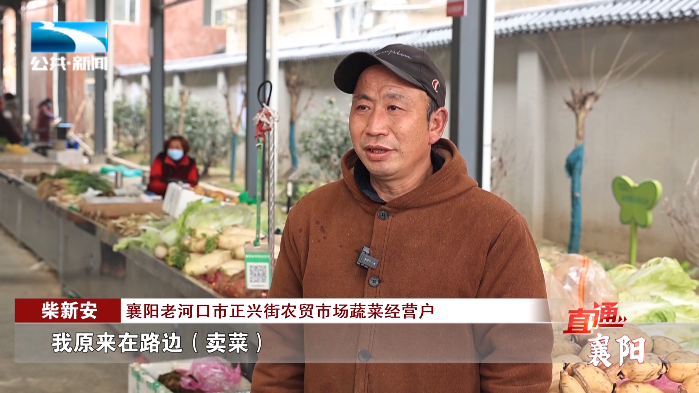襄阳老河口市正兴街农贸市场蔬菜经营户 柴新安:“现在搬进来之后摊位整齐划一,统一管理,从原来的3个摊位扩大到5个摊位了,生意比原来翻了两三倍。”