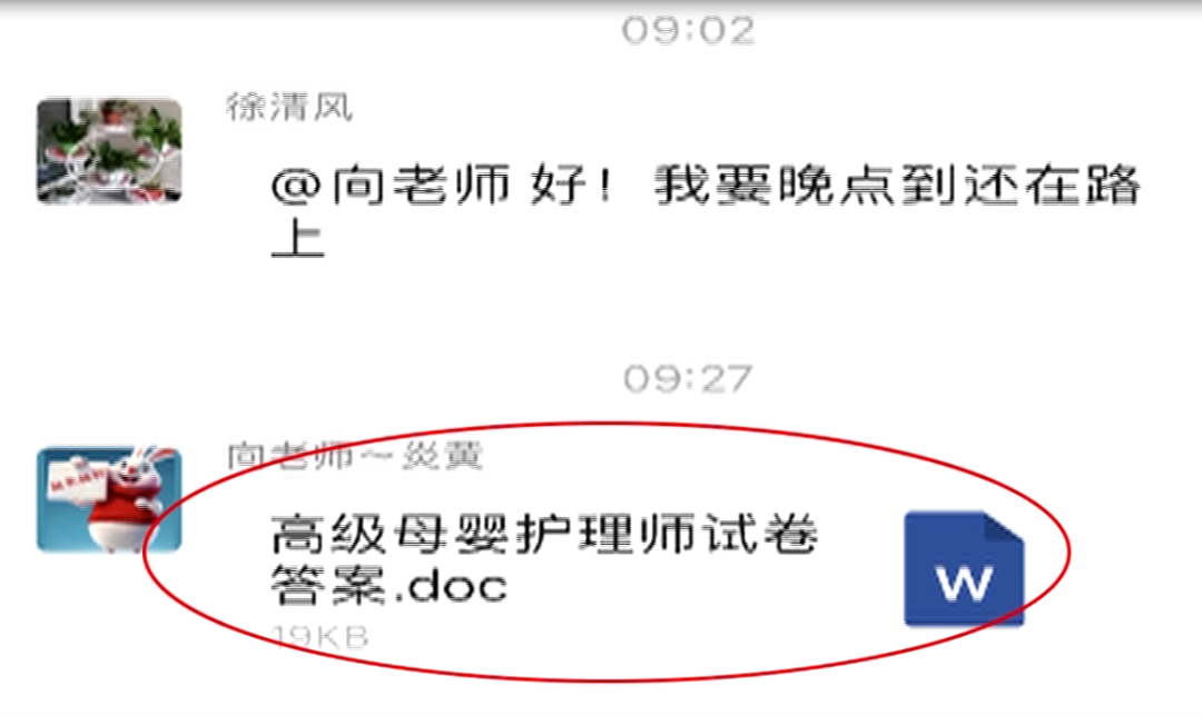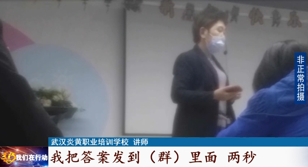 学员参加理论考试时,监考老师果然就是武汉炎黄职业培训学校的工作人员,并且还直接把答案发到了群里。