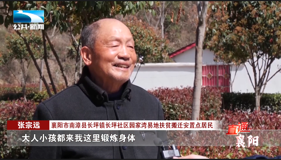 襄阳市南漳县长坪镇长坪社区园家湾易地扶贫搬迁安置点居民 张宗远:“大人小孩都来我这里锻炼身体,我觉得很高兴。”