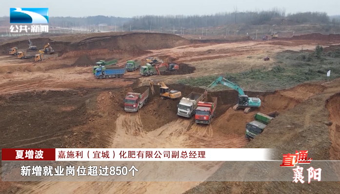 嘉施利(宜城)化肥有限公司副总经理 夏增波:“目前这个项目正在进行场地平整,预计2023年4月份场地全部平整完成,项目建成投产以后,我们预计实现销售收入50个亿,新增税收超过两个亿,新增就业岗位超过850个。”