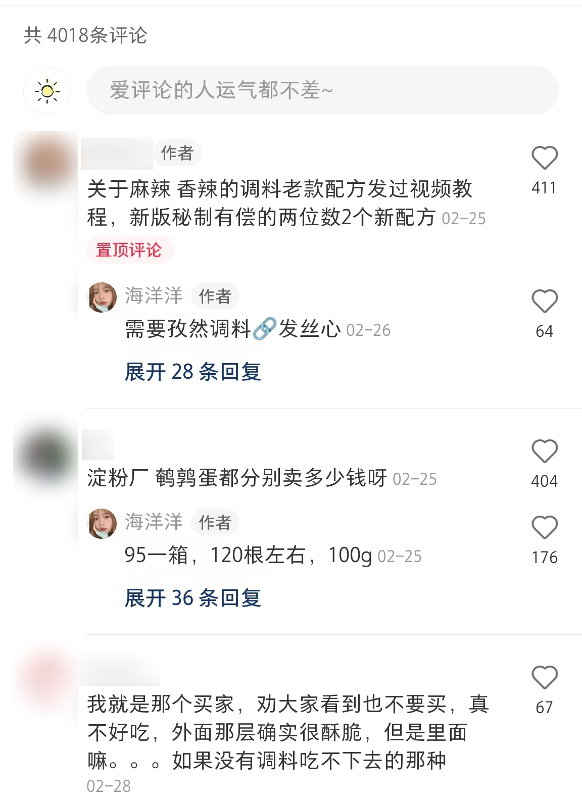 记者也在某博主发布攻略的评论区发现,置顶的第一条便是博主自己卖独家酱料的评论,一根烤肠3块钱,两个配方就能卖几十元,评论区也在一直向“卖配方”引流。