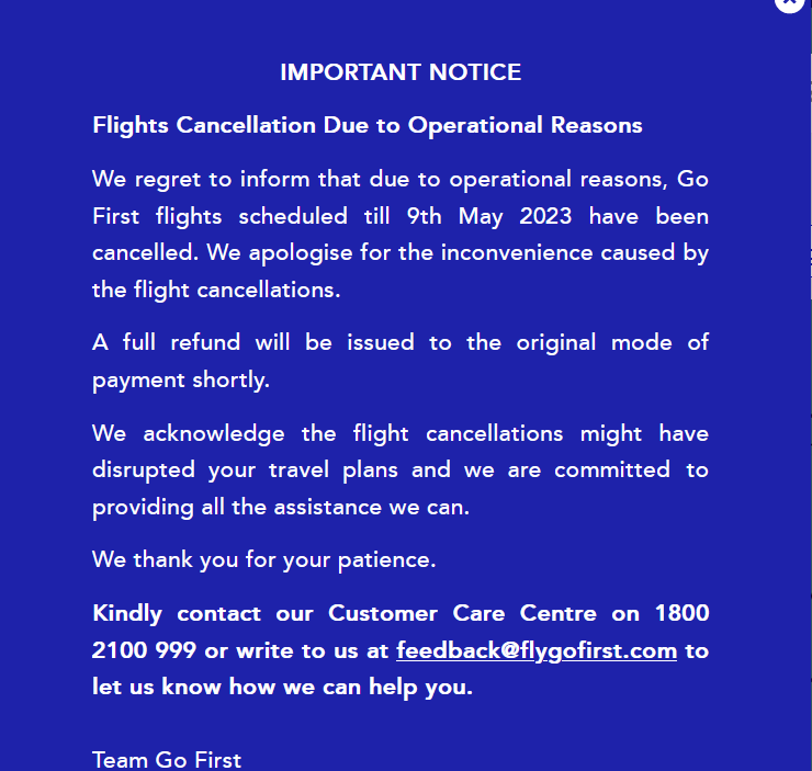 捷行航空在其网站上表示,由于“运营原因”,原计划截至5月9日的航班已被取消。