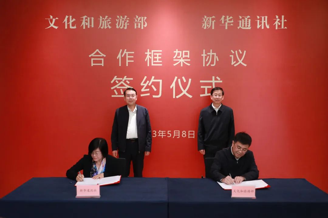 文化和旅游部、新华通讯社5月8日在京签署合作框架协议。双方将携手推动文化和旅游高质量发展,更好担当举旗帜、聚民心、育新人、兴文化、展形象的使命任务。