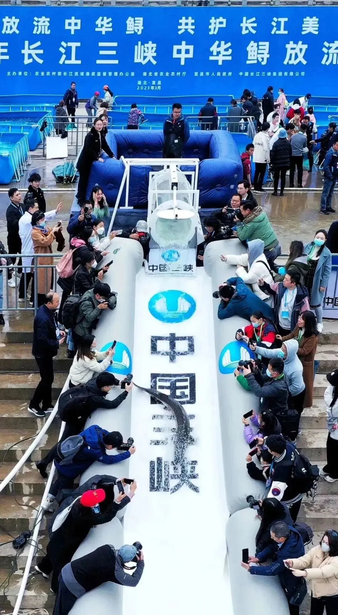 中华鲟放流。摄影师@周星亮
