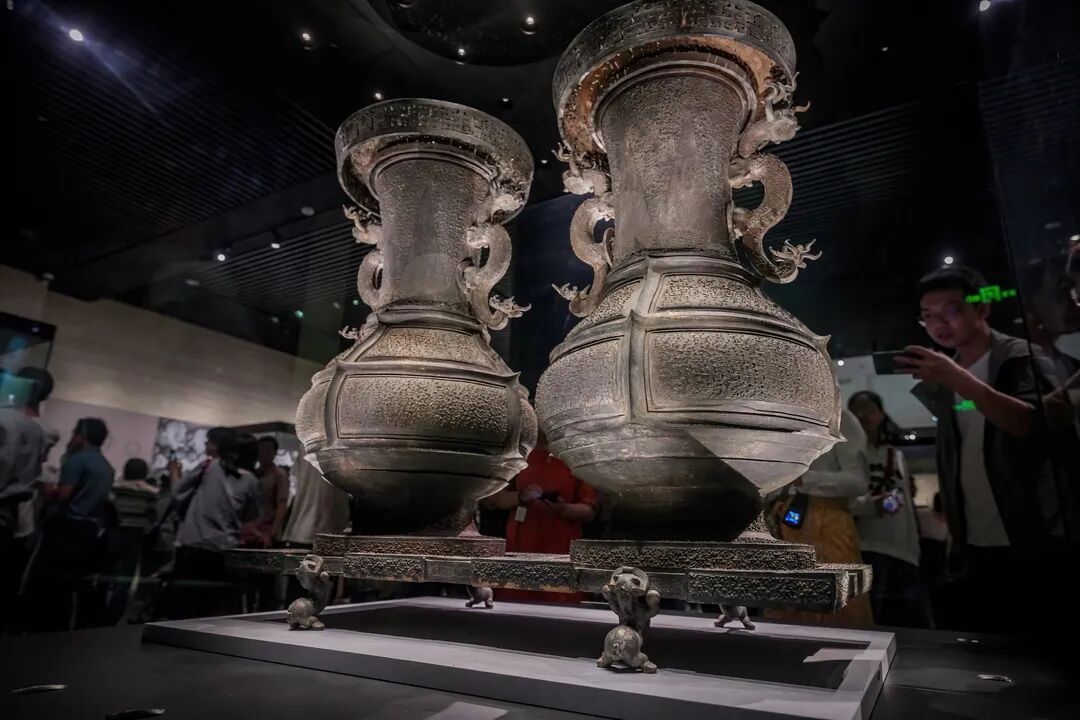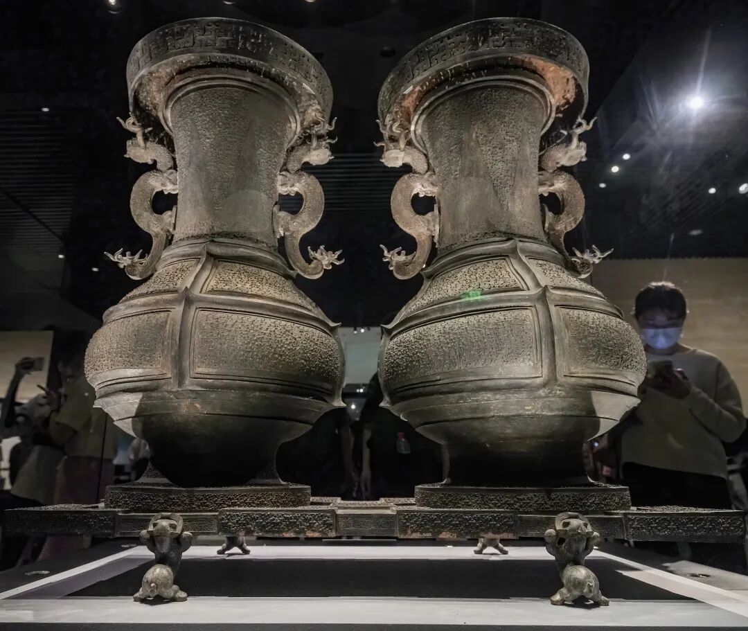 从网友分享的视频内容来看,这件吸引百万网友点赞的“网红”文物,就是陈列于湖北省博物馆一楼曾侯乙展厅的铜联禁大壶。