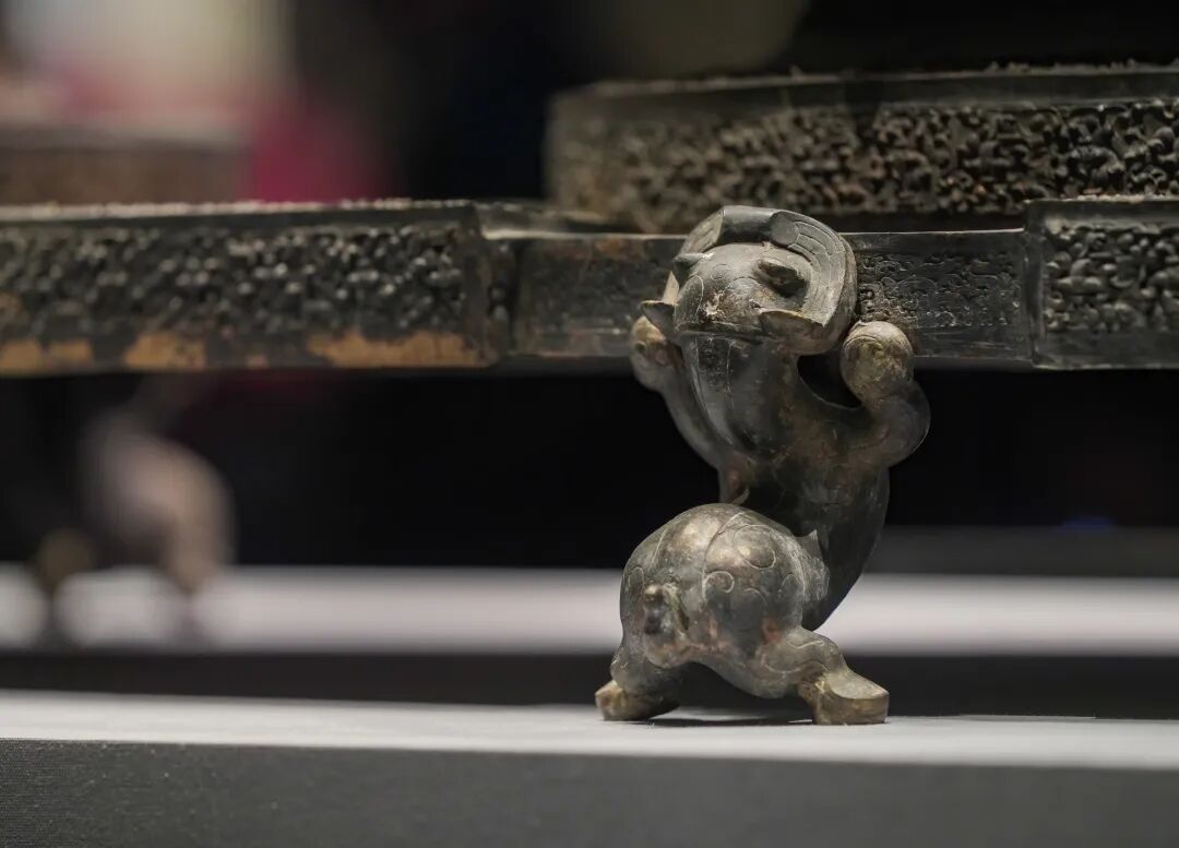 一般来说,参观者看到这件铜联禁大壶时,注意力都会放在通高99厘米的大壶身上,赞其造型精美,气派雄壮。但在年轻网友的眼睛里,这件文物的铜禁部分堪称“神来之笔”。