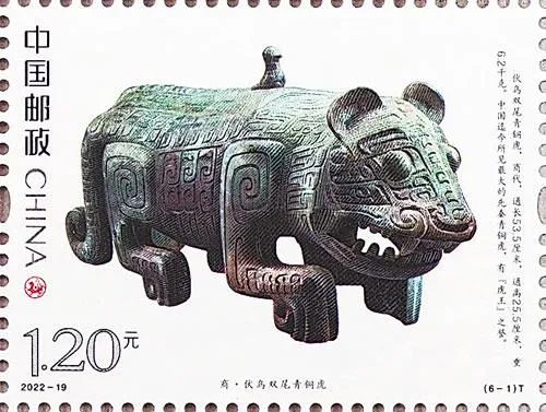 △以“伏鸟双尾青铜虎”为图样发行的邮票