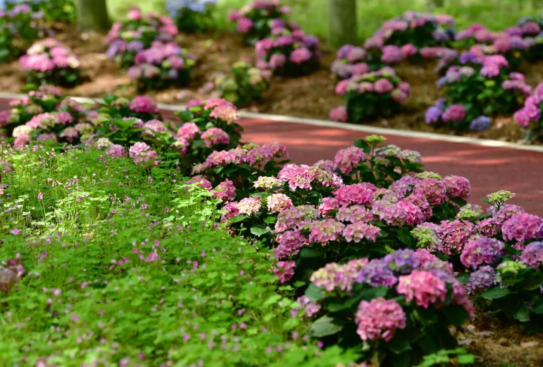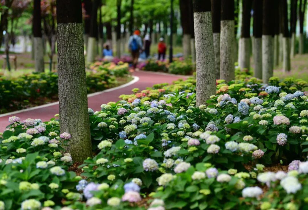 公园内、马路旁、小区里、湖畔边随处可见五颜六色的花朵谁不喜欢热烈的花花呢今天小编要推荐的是沙湖公园浪漫的月季花海五彩的大朵绣球花