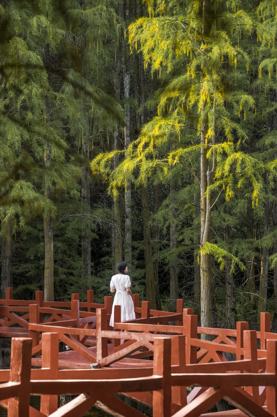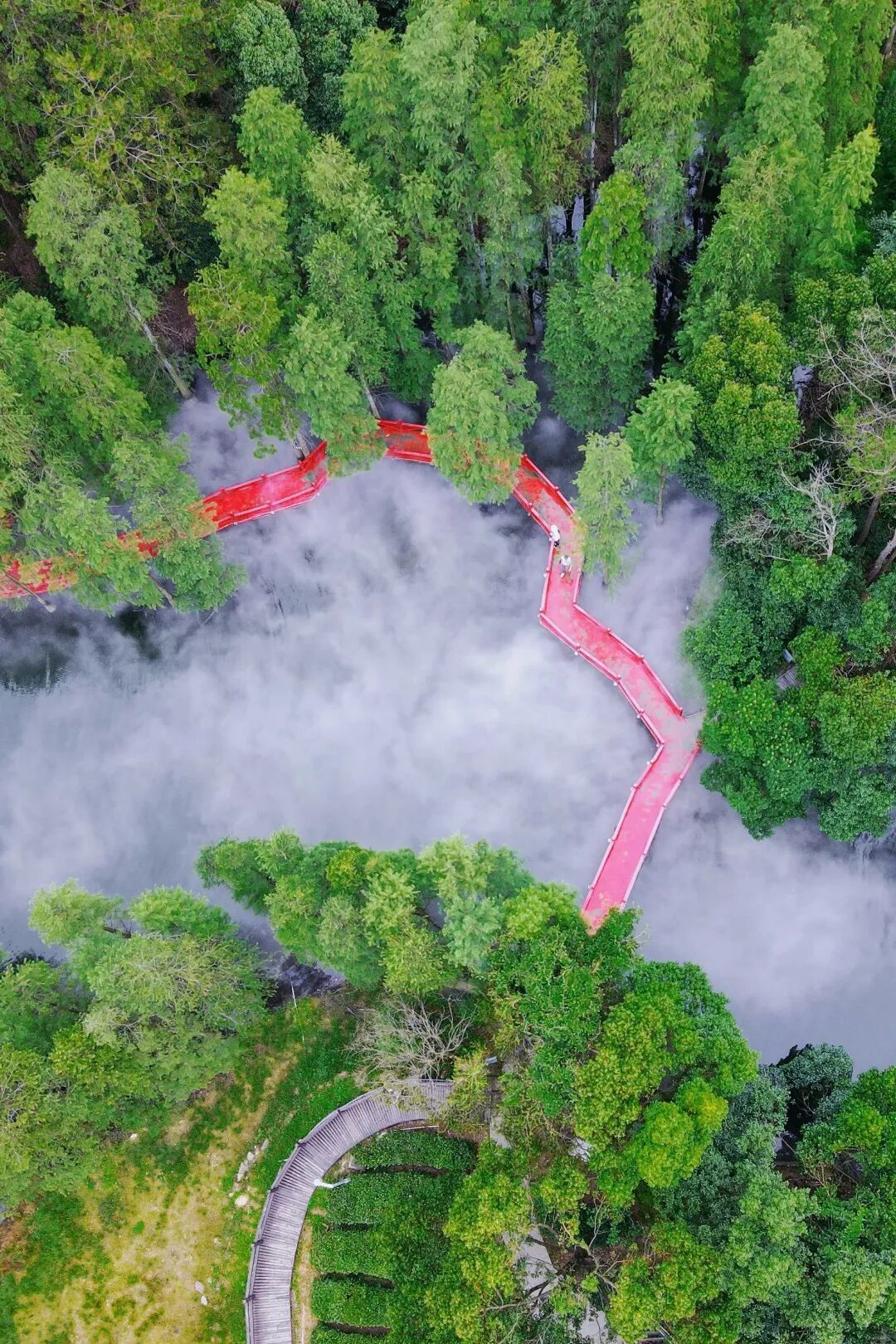 还有网红景点冷雾水杉九曲桥,