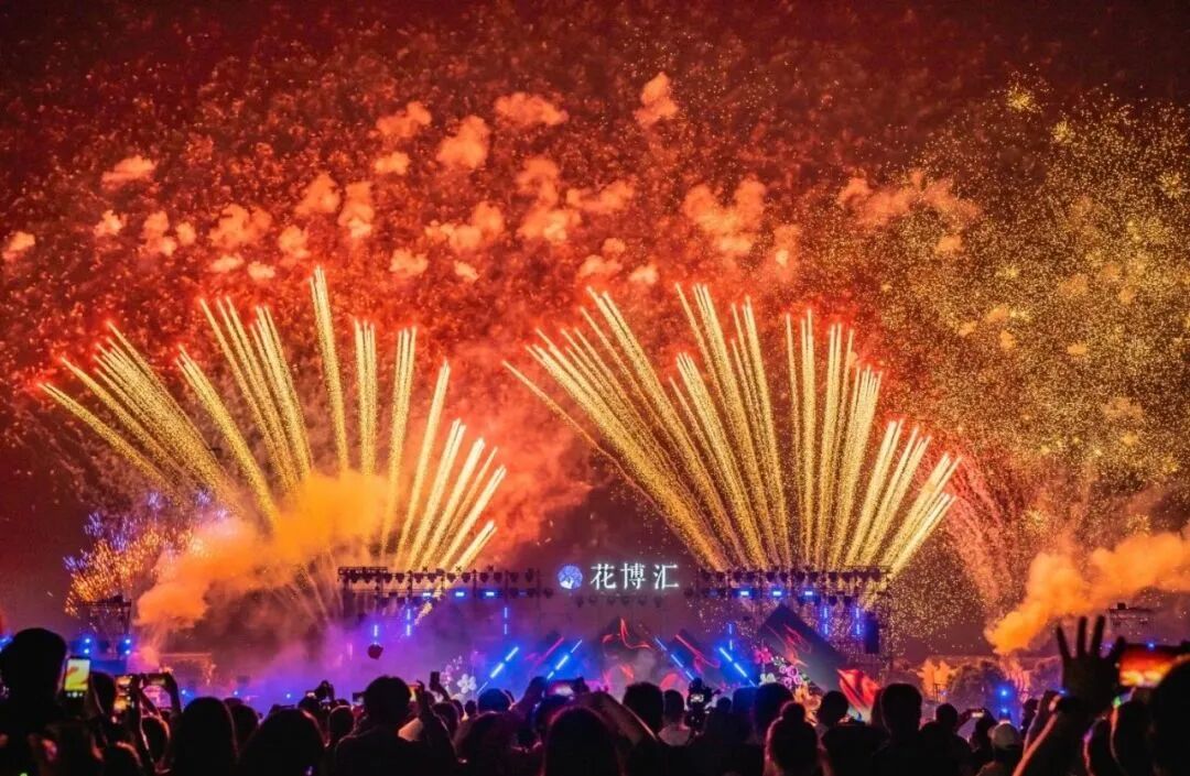 夜晚降临,还有升级改版后的“知音盛焰·花博汇”焰火剧场秀璀璨上演。