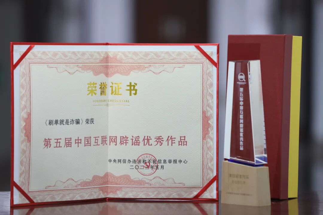 2023年5月16日,由麻城市公安局报送的公益宣传短视频《刷单就是诈骗》荣获第五届中国互联网辟谣优秀作品!