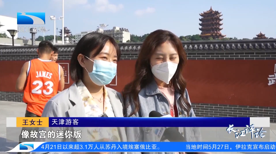 天津游客王女士、李女士:“像故宫的迷你版捧着黄鹤楼,拍照很有古韵的感觉。”