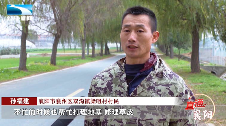 襄阳市襄州区双沟镇梁咀村村民 孙福建:“不忙的时候也帮忙打理地基,修理草皮。”