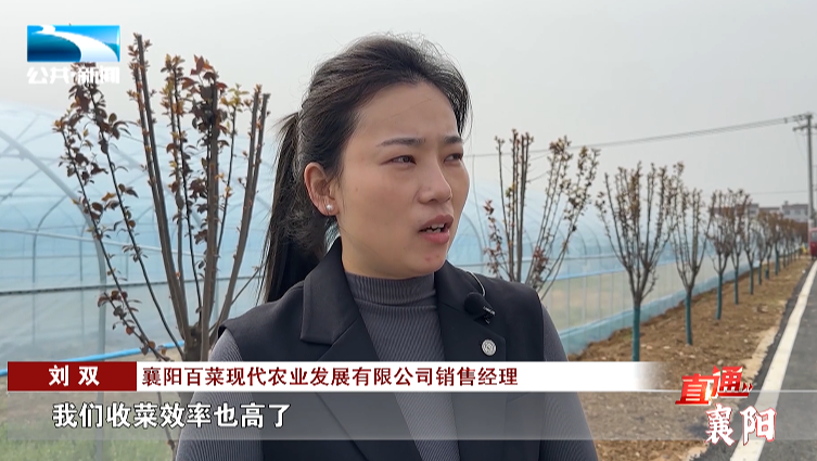 襄阳百菜现代农业发展有限公司销售经理 刘双:“以前的路很窄,两个小车过来都错不开,现在把路给修宽了,车辆进出都很方便,从田间采摘的蔬菜,很短时间内就可以给它运出去,我们收菜效率也高了。”