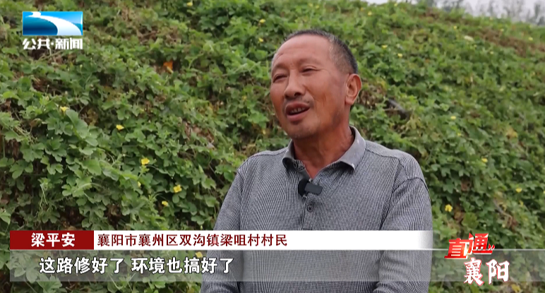 襄阳市襄州区双沟镇梁咀村村民 梁平安:“这路修好了,环境也搞好了, 我们卖菜方便了,我不忙的时候帮助村里打扫卫生,把村里环境搞得更好。”