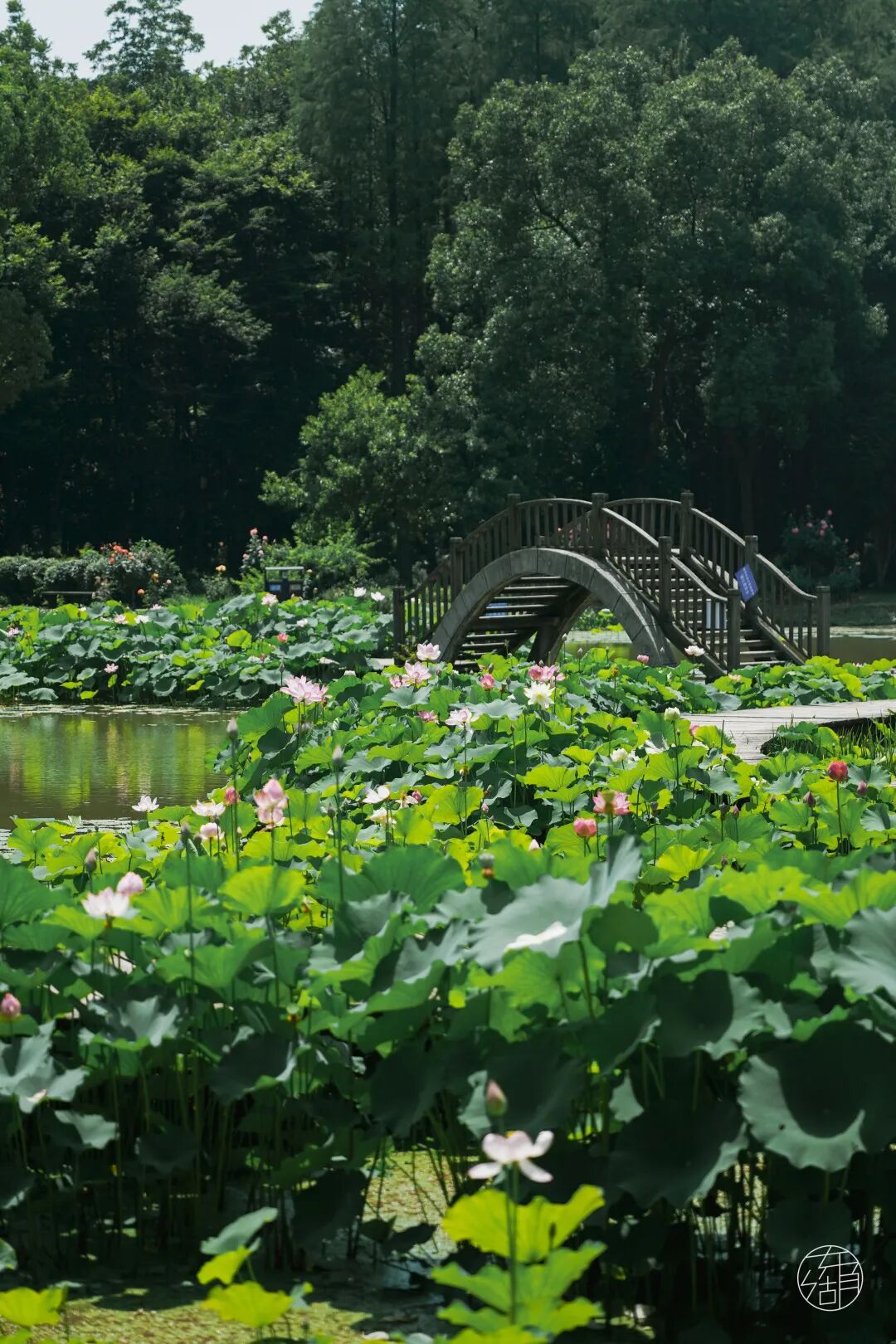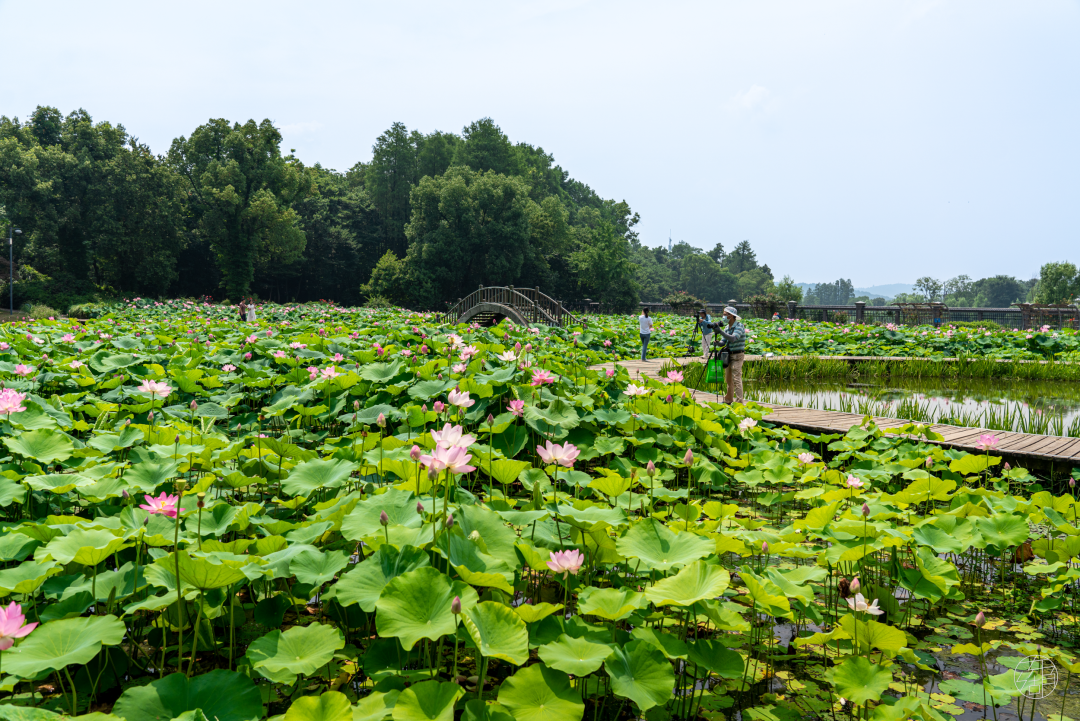 除此之外,马鞍山森林公园里还藏着一片荷花花海,就在太渔桥边,比起东湖其他各处,这里的荷花更多一分野蛮生长的活力。