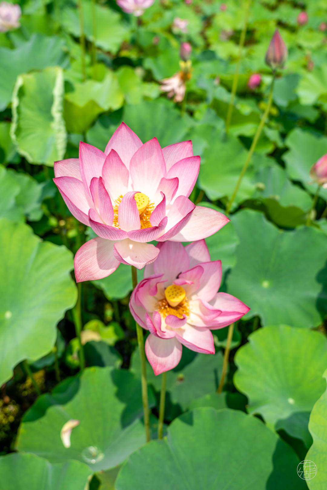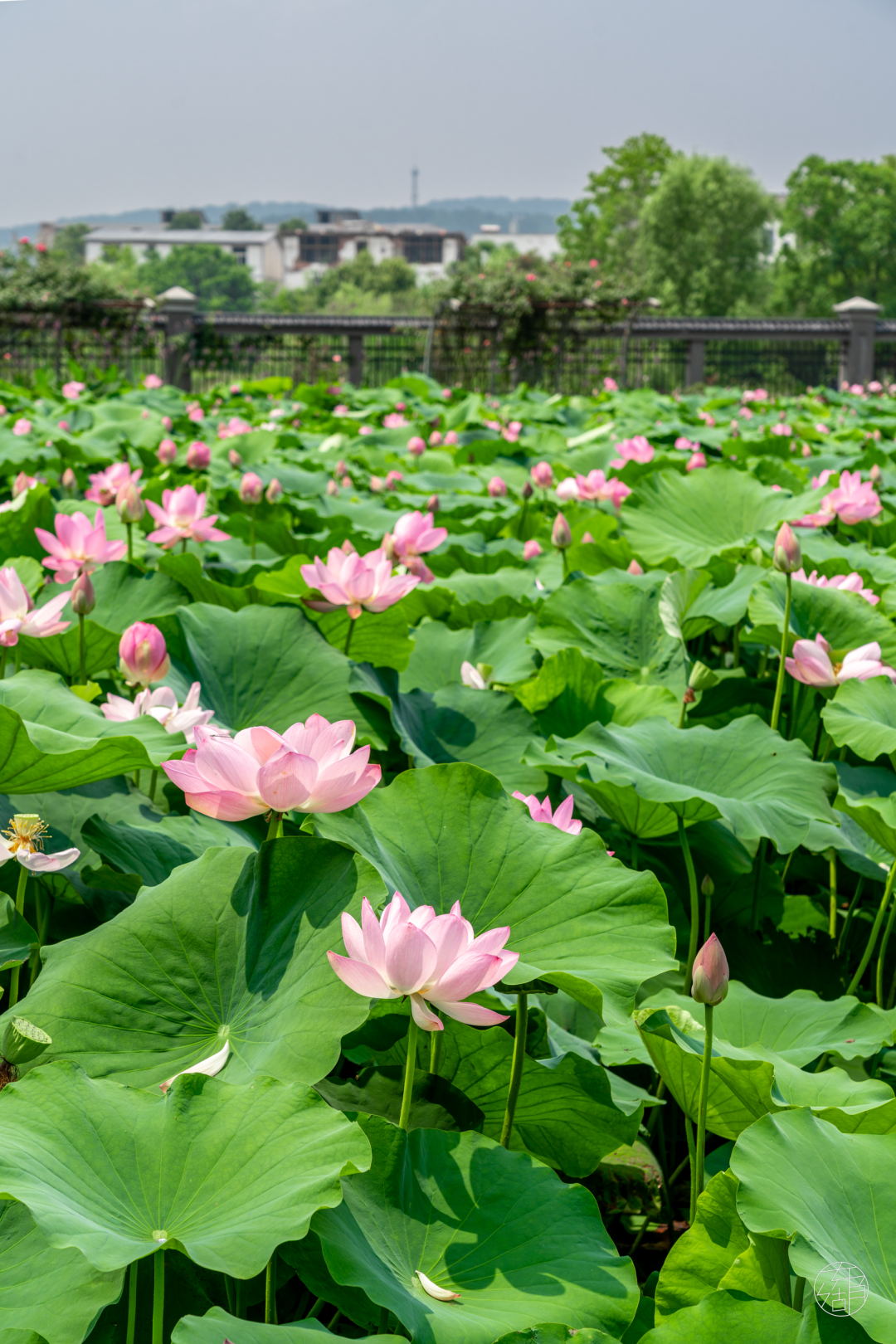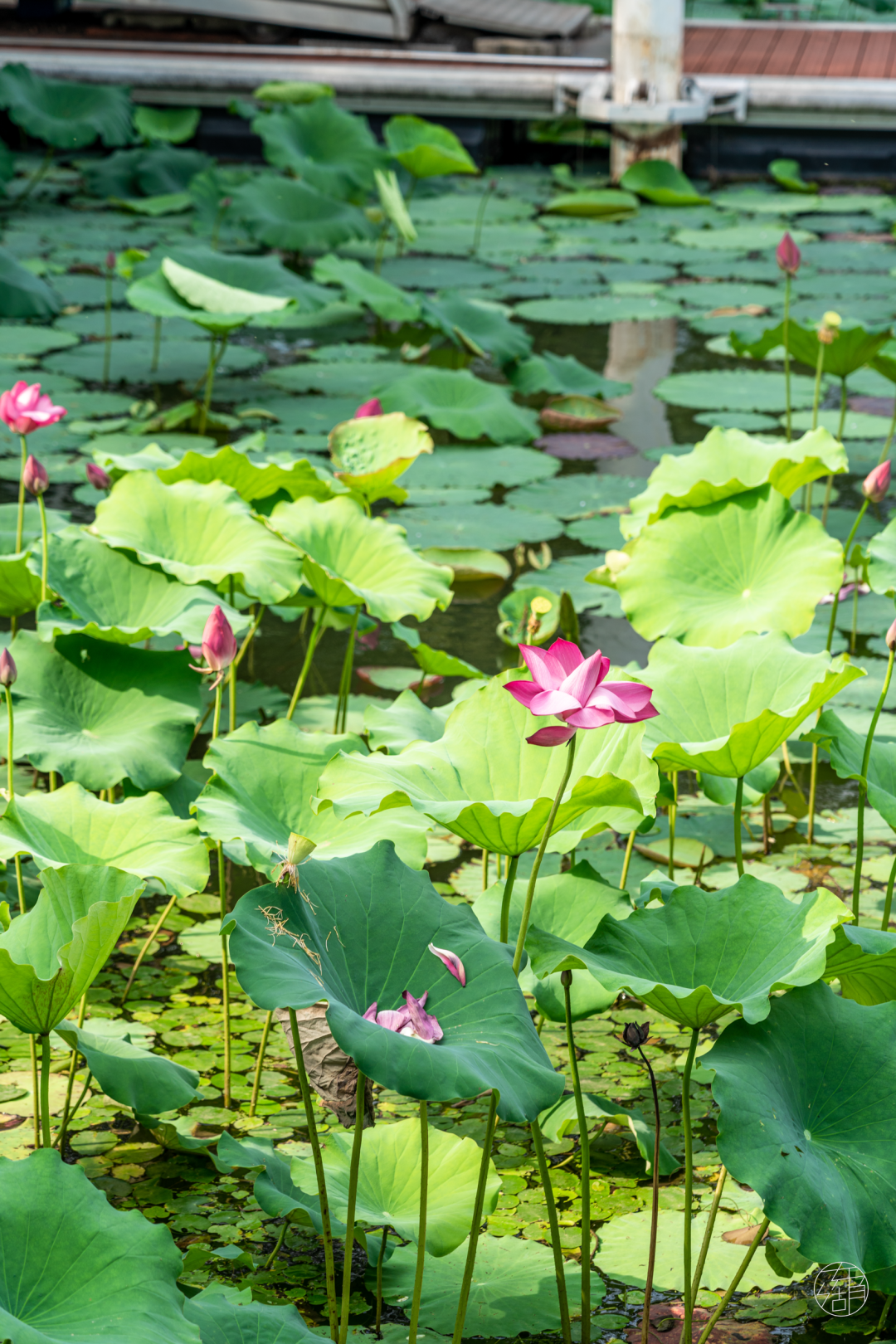 看着满池风光,脑海里蹦出那句「接天莲叶无穷碧,映日荷花别样红」,恰似眼前盛景。
