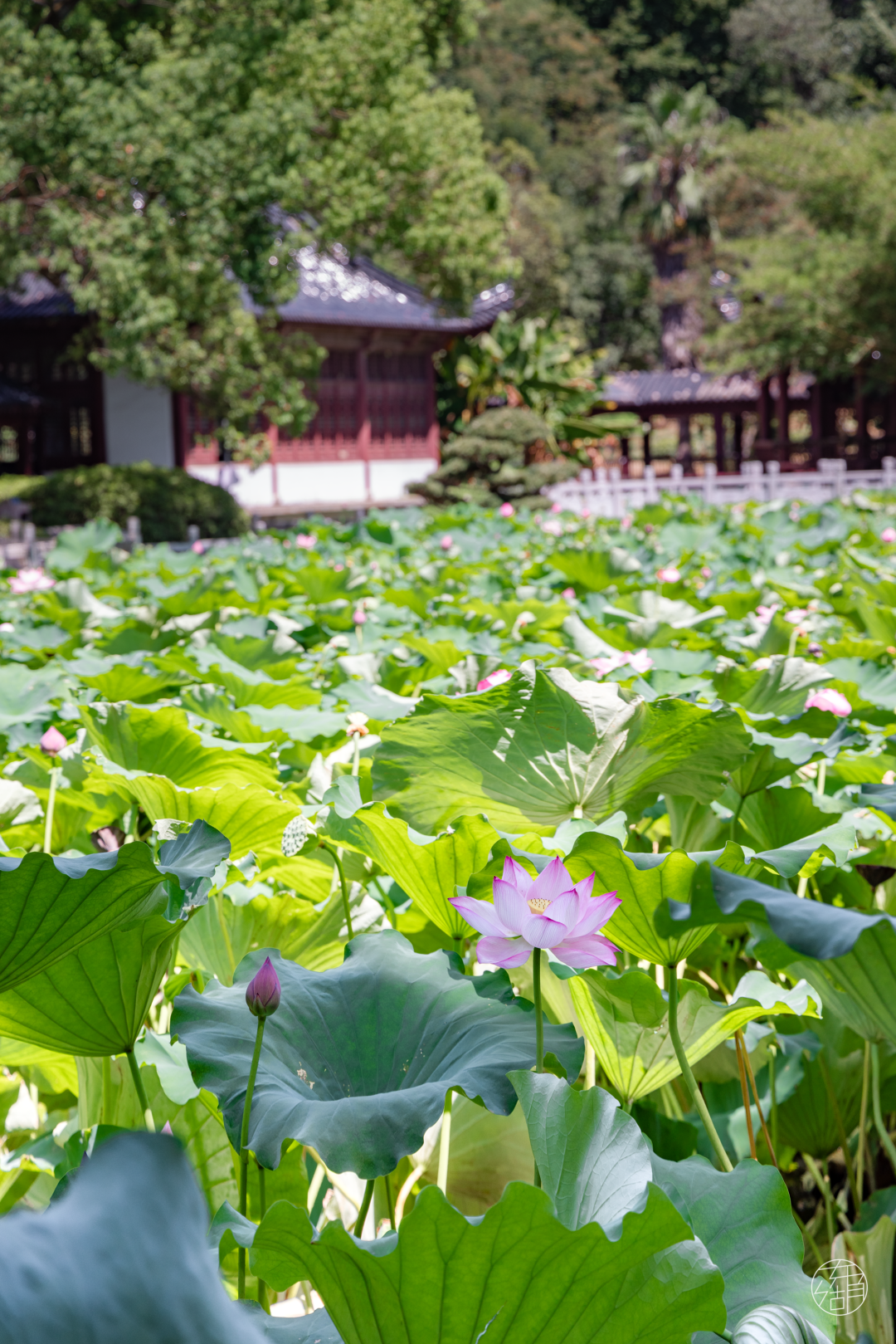 如果说去植物园赏荷是细品荷花不同美感,那么在磨山荷园赏荷便是体验一次古风穿越之旅。