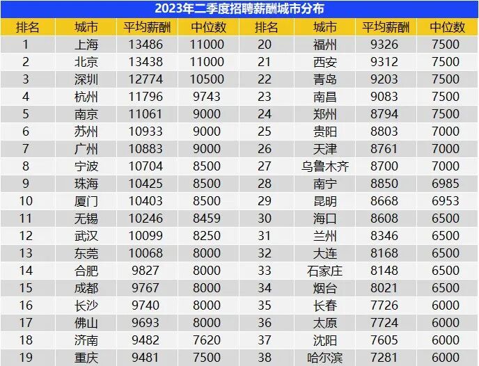 近日,智联招聘发布2023年二季度《中国企业招聘薪酬报告》,展示国内38个核心城市企业的招聘薪酬水平。在监测的全国38个核心城市中,二季度武汉位居十二位,平均月薪10099元。