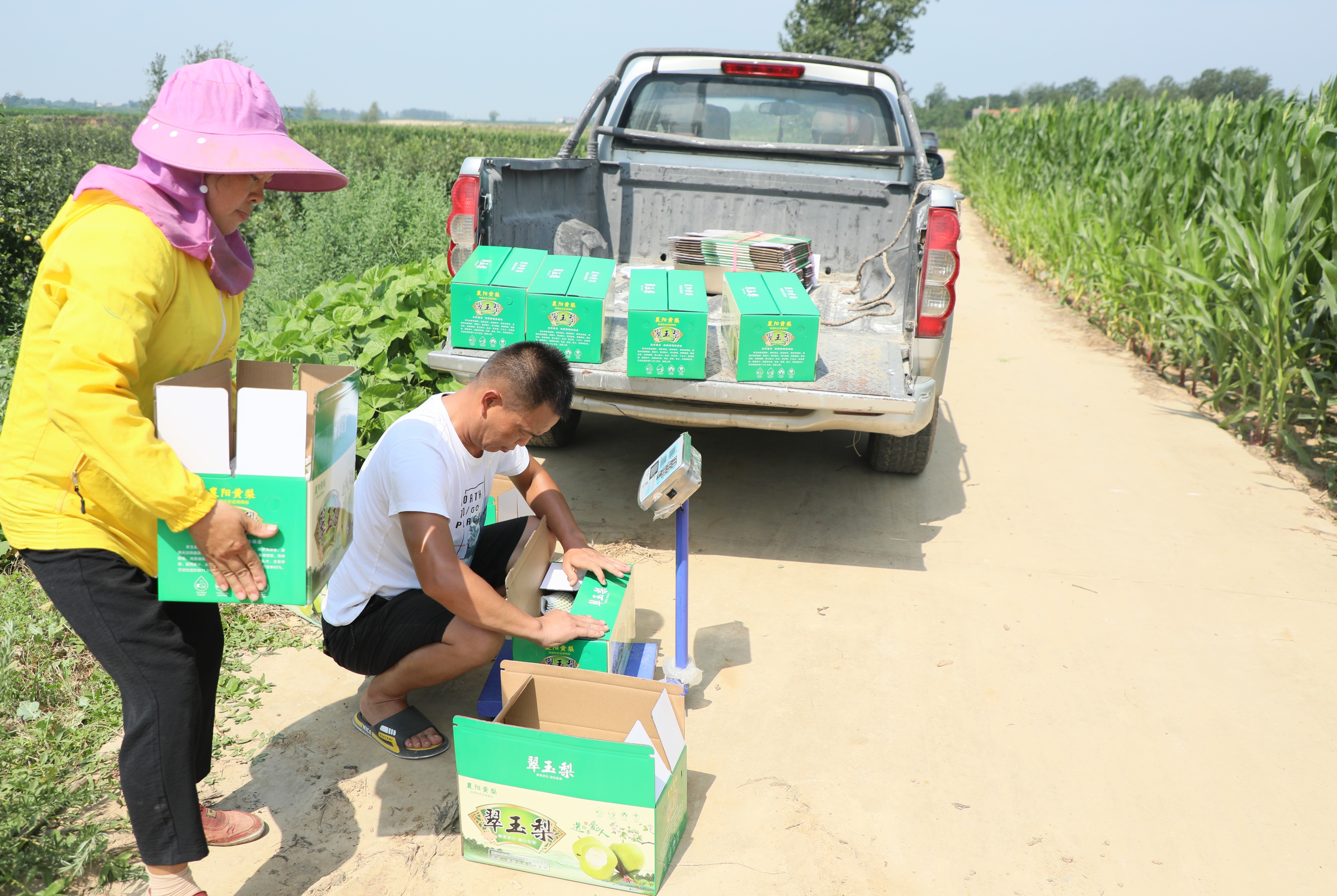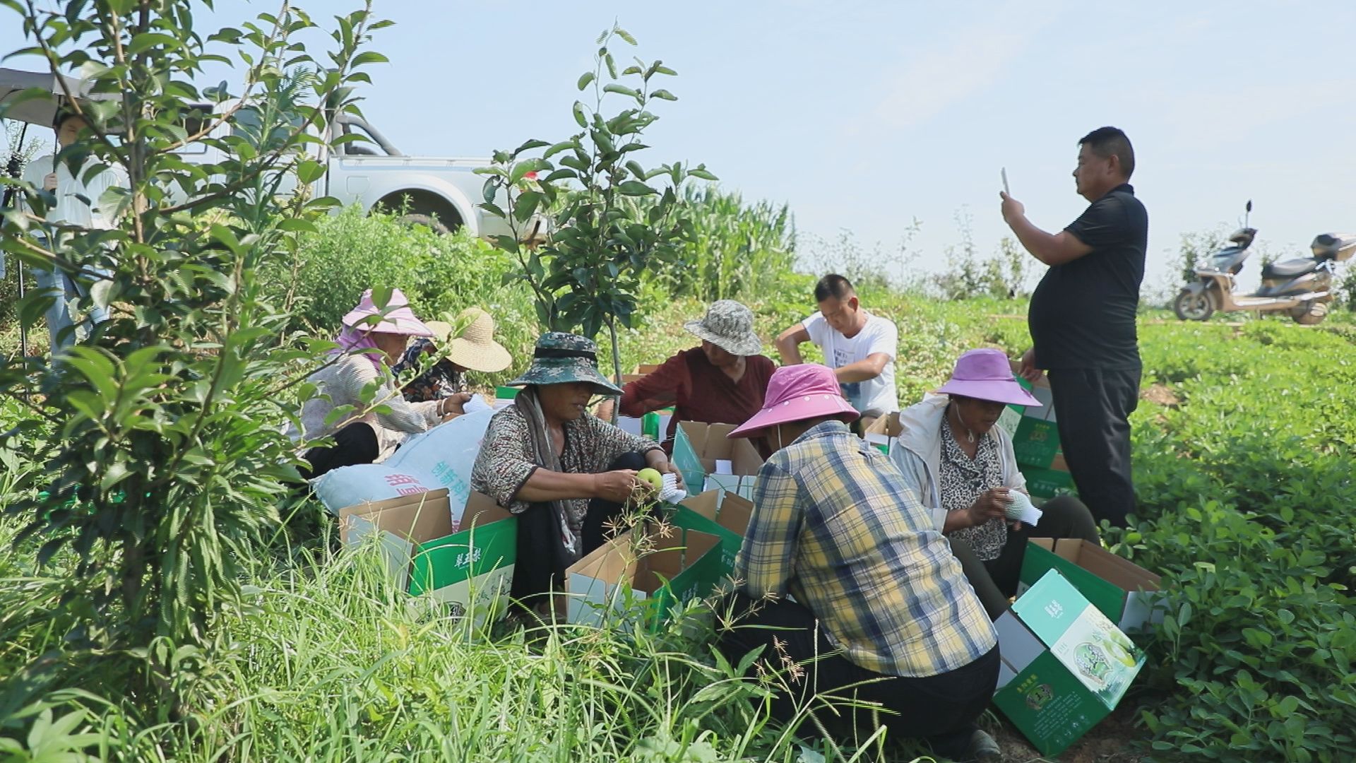 果农忙着采摘、筛选、过秤、装箱,发往全省各地。