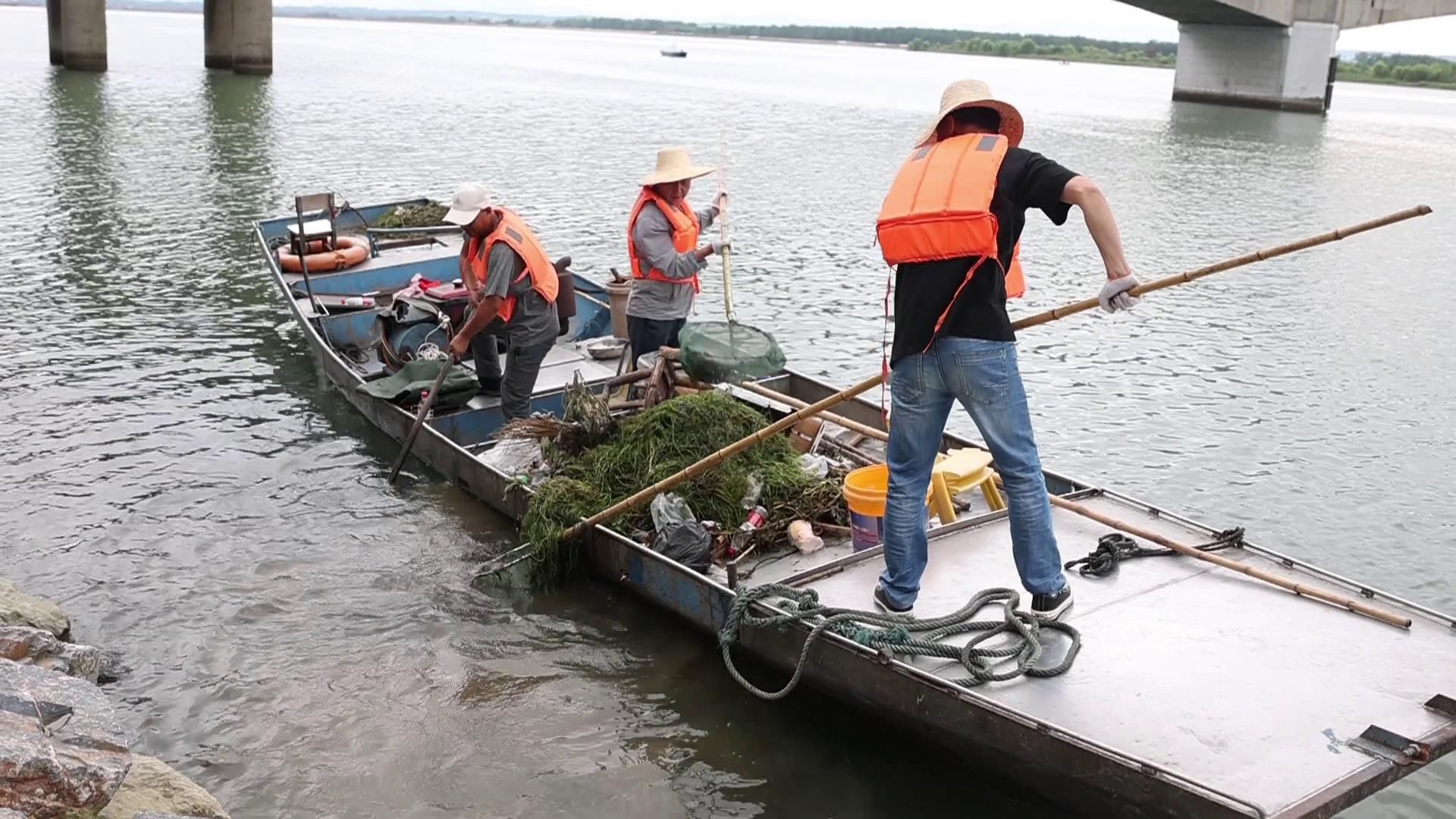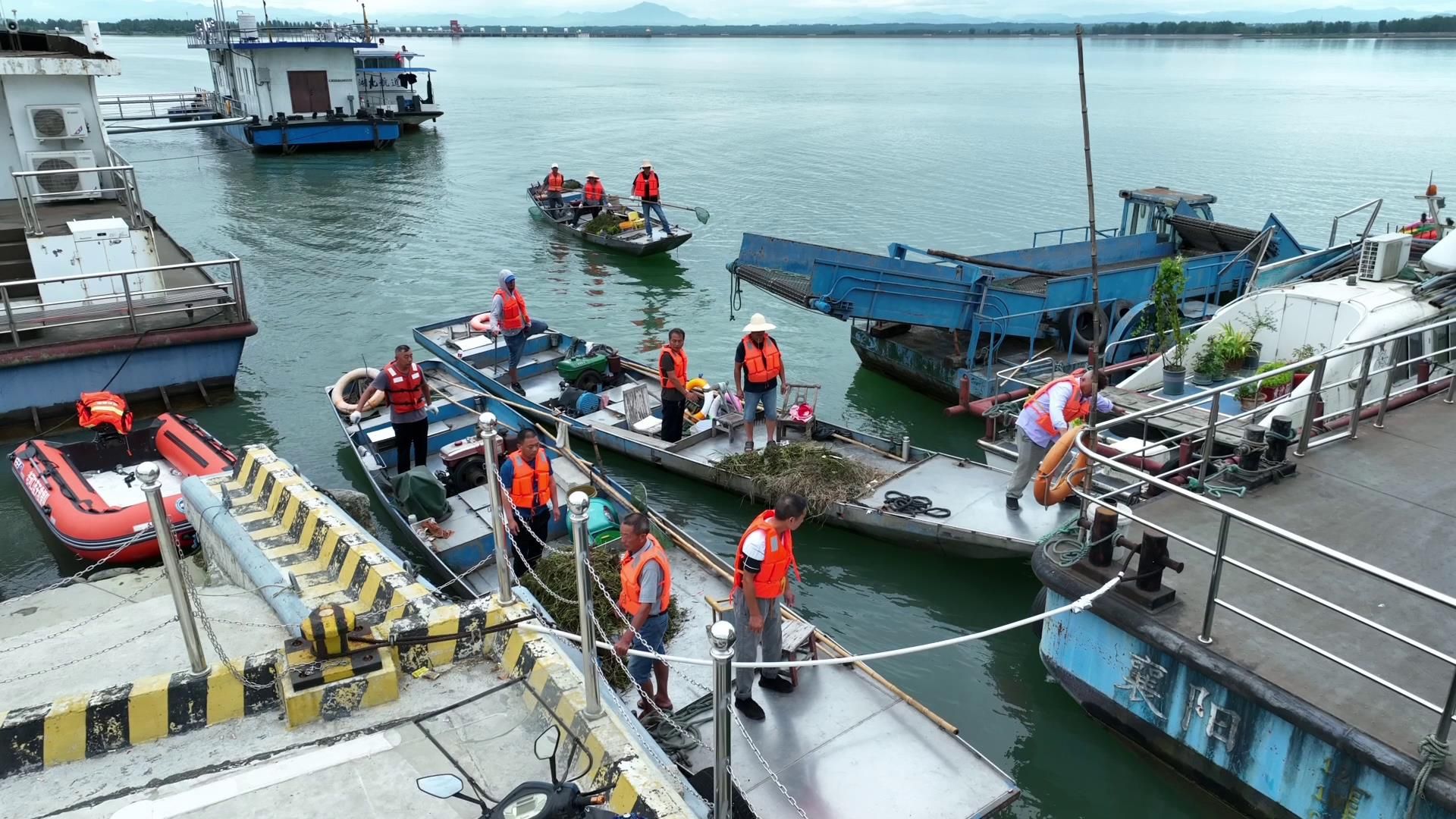 近期,汉江流域持续降雨,丹江大坝泄洪,一些杂物顺流而下,夏季的高温天气,也导致水草长势旺盛,在汉江老河口库区形成了水面漂浮物。为防止漂浮物污染水质,该市农业农村局及时组织打捞队,利用专业清漂船、人工船进行立体打捞,全力“护航”水环境。