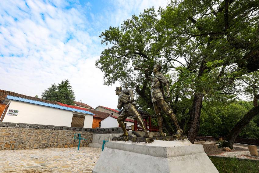 在古树旁边还矗立着新四军两名战士的雕像,代表着曾在甘溪抛头颅洒热血的烈士,当地群众将革命烈士的先进事迹口口相传,代代不忘,用烈士们的英勇事迹来鼓舞后代。