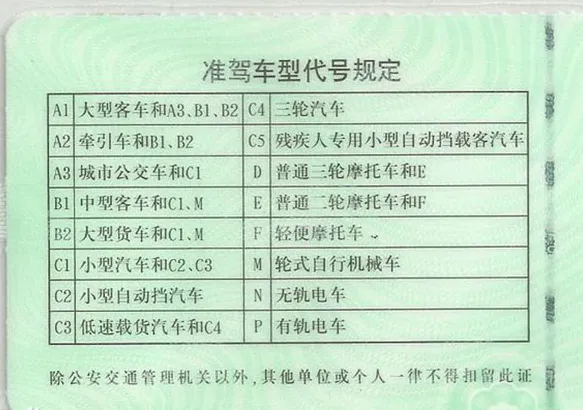 降级后的准驾车型如下
