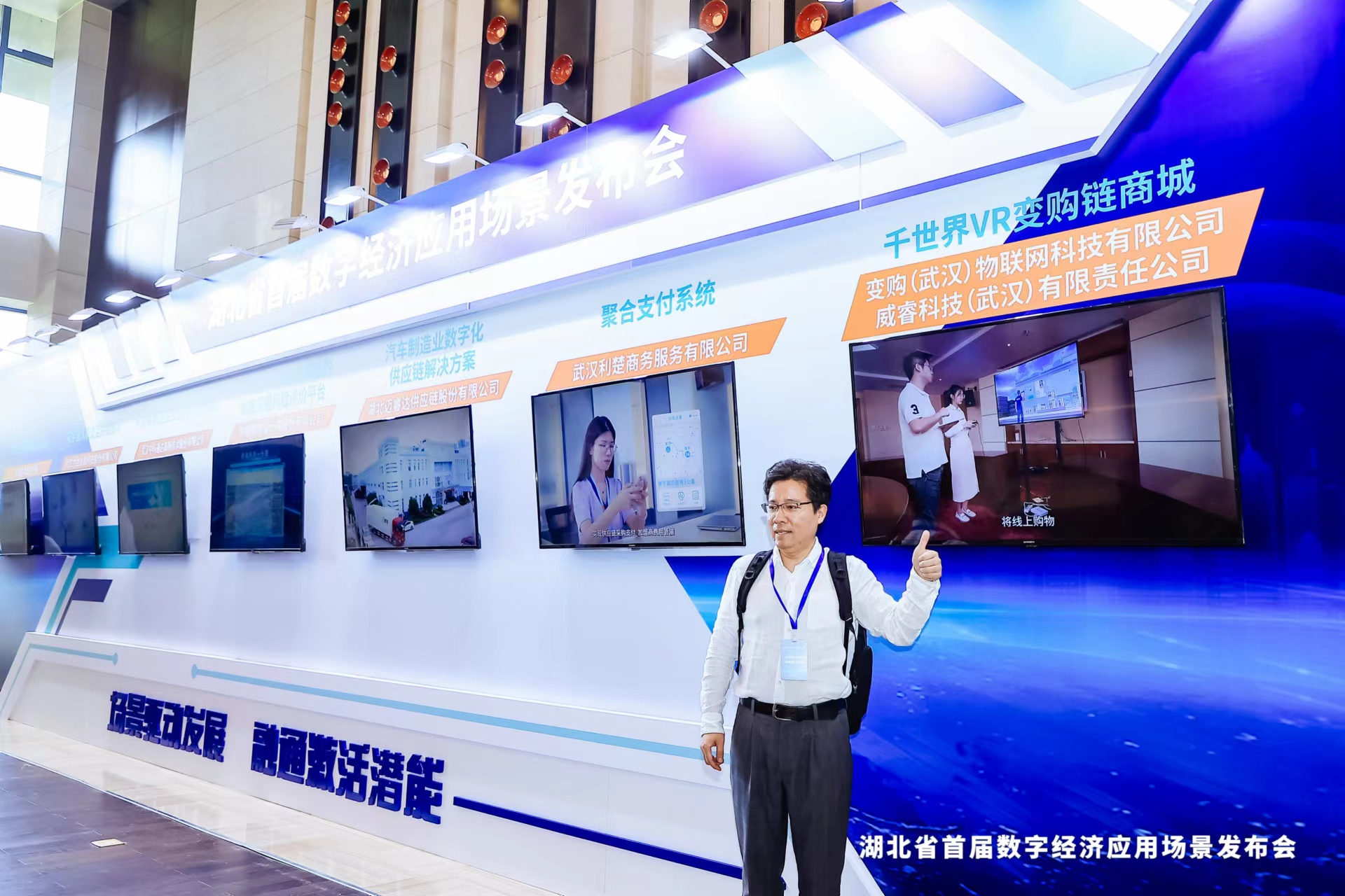 发布会现场还展示了“千世界VR变购链商城”、“基于大数据下的生鲜流通应用”、“吉奥自然资源与不动产统一登记系统V5.0”等数字经济典型应用场景。“我们运用VR、三维建模、区块链等技术,1:1还原线下商城,通过电视屏实现了用户‘身临其境’去购物。”变购(武汉)物联网科技有限公司总经理杨烁介绍了变购链商城的应用与前景。