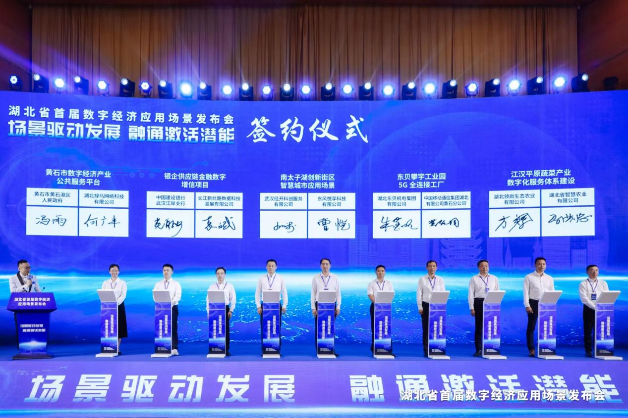 为推进产业集群建设,让头部企业辐射效应逐步显现,发布会现场还举行了湖北省数字经济应用场景供需对接集中签约仪式。省住建厅与中信数智(武汉)科技有限公司、黄石市黄石港区人民政府与湖北禄马网络科技有限公司,汉川浙商产业园建设发展有限公司与迈睿达等20家单位,就湖北省智能建造BIM云平台、黄石市数字经济产业公共服务平台、中国汉派服饰网红直播基地等10个项目顺利签约。中国农业银行湖北省分行、长江产业创投基金公司等机构还发布了相关金融优惠政策和基金产品,为数字经济产业发展提供融资支持。