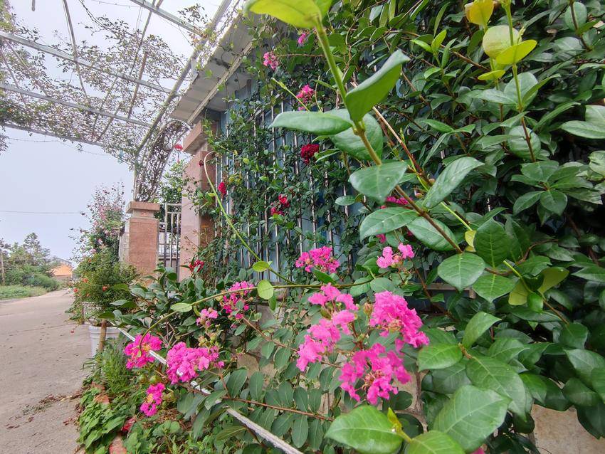 “自古逢秋悲寂寥,我言秋日胜春朝。”8月27日,湖北省孝感市云梦县城关镇铁西农旅片区,西王村阳光玫瑰园硕果累累,“肖李”“白合”等品种的硕大柚子挂满枝头,橘子、枣子等果实压弯枝头,多彩的花儿竞相开放、装点初秋。美丽乡村风景如画,果实飘香,秋花秋果秋色美。