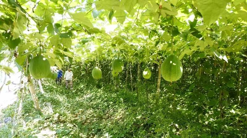 8月29日,在城关镇红和村瓜蒌种植基地,满眼苍翠,藤蔓下挂满圆滚滚的瓜蒌,一个个青色的瓜蒌长势喜人,散发出勃勃生机。
