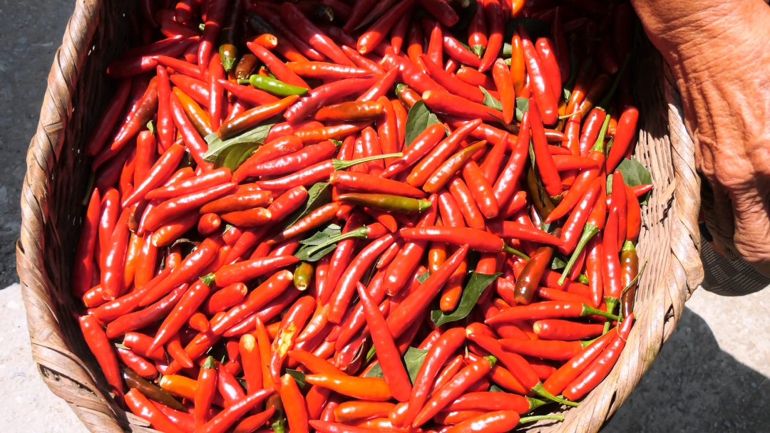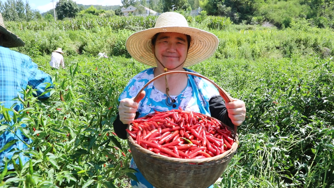 近日,谭家湾镇正河村辣椒基地迎来丰收,一串串红润饱满、沉甸甸的尖椒挂满枝头,村民们忙着采摘、转运、分拣。田间地头红绿相宜、笑靥成趣,丰收场景让人喜上眉梢。