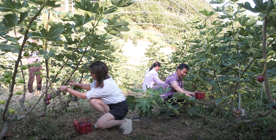 立秋过后,在城关镇翻山堰村的无花果基地,低矮的无花果树上挂满了青褐相间的果实,游客提着篮筐穿梭在果园中,采摘已经完全成熟的果实。