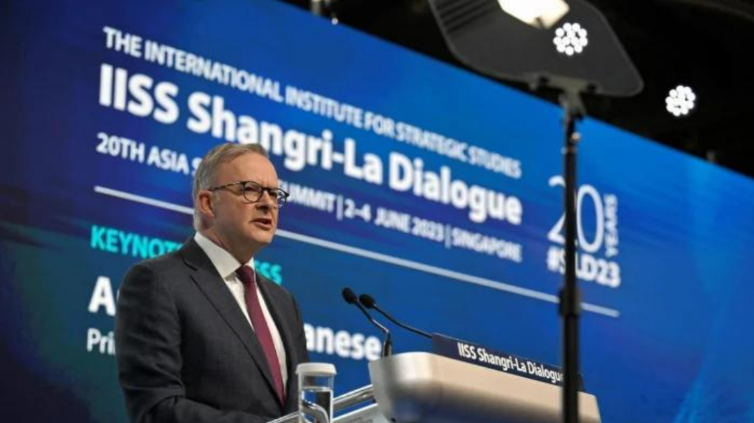 2023年6月,阿尔巴尼斯在香格里拉对话会上表示,开展对话是稳定对华政策的重点工作。图片来源:环球网