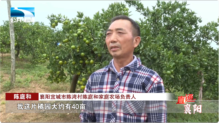襄阳宜城市陈湾村陈庭和家庭农场负责人 陈庭和:“我这片橘园大约有40亩,每亩产量3000斤,按照均价1块5(1斤),每亩可以收4000元左右。”