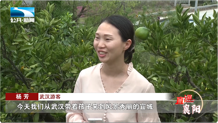 武汉游客 杨芳:“今天我们从武汉带着孩子来到风景秀丽的宜城,来到硕果累累的橘园。这里的风景特别好,橘子也特别甜,能让孩子在这里认识一下橘子如何生长的、如何采摘的,体验一下劳动的乐趣,这是一件特别有意义的事。”