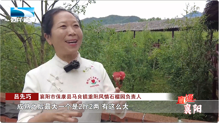 襄阳市保康县马良镇重阳风情石榴园负责人 吕先巧:“突尼斯软籽石榴,它口感好,甜,籽都可以吞,不用吐籽,成熟之后最大一个是2斤2两,有这么大,像吃饭的大碗那么大 。”