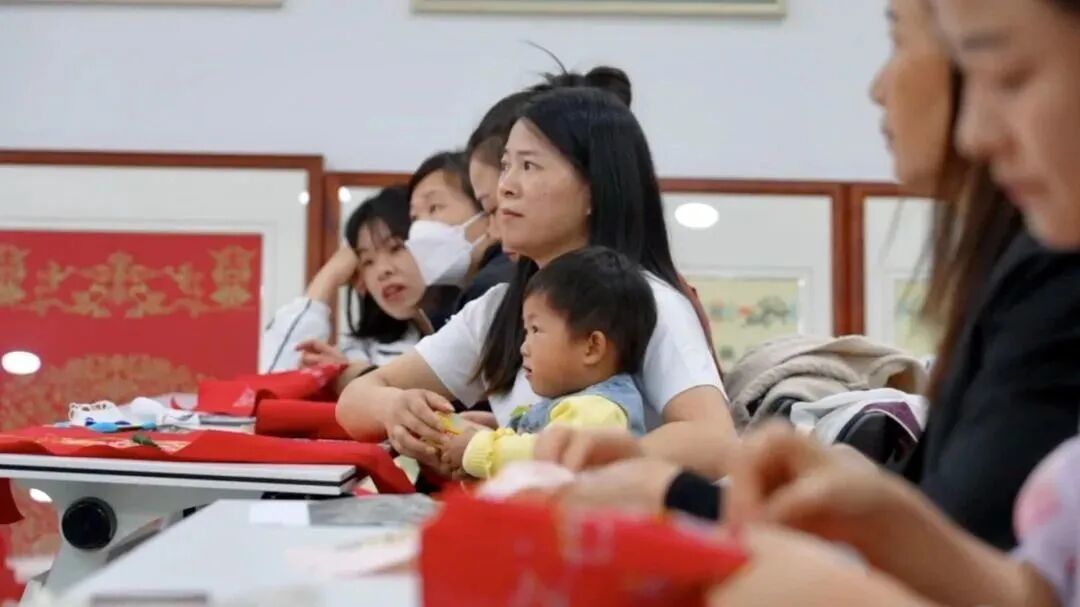 黄梅县留守妇女们带着孩子一起上课