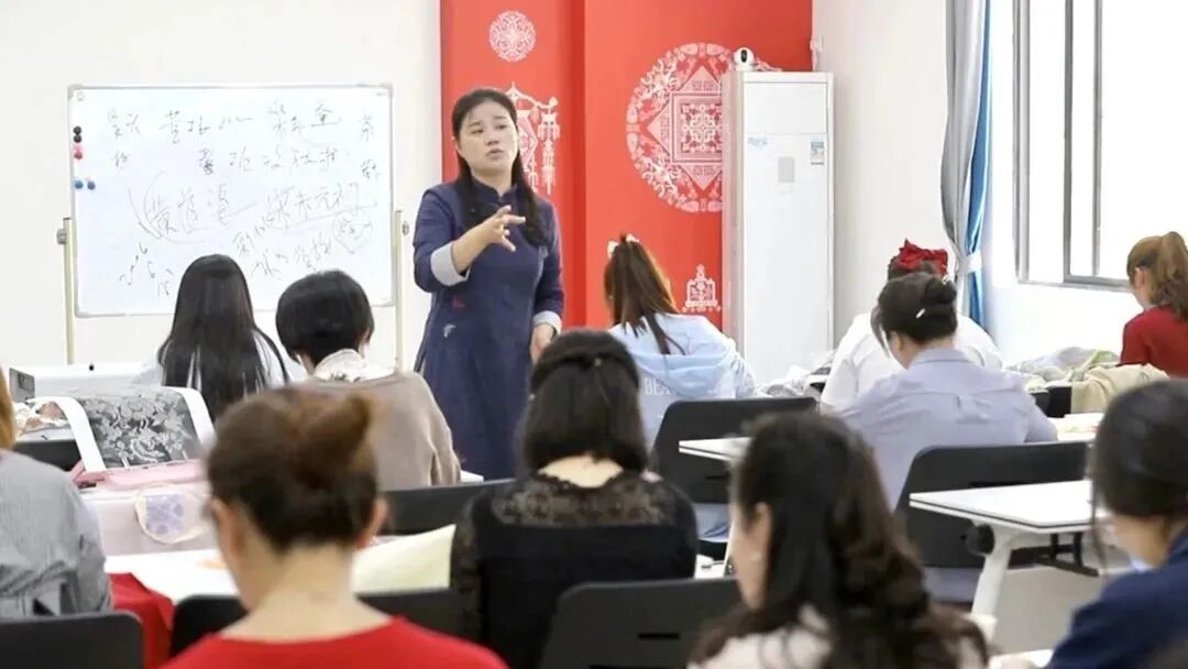 然而,随着时代的变迁,黄梅挑花这一传统工艺与人们的生活距离逐渐拉大,落入被人遗忘的角落。就是在这个时候,85后黄梅挑花市级传承人洪利站了出来,在县里的帮助下,她在7个镇上建立了微工坊培育绣娘,材料、场所、教学均免费提供。组织引导农村留守、贫困妇女参加挑花初级技能培训,改变了农村留守妇女们无法创收就业的情况,给她们带来了收入,改变了她们的家庭收入结构,让妇女们变得更自信。黄梅妇女们是黄梅挑花艺术的不朽传承者和坚定守护者,她们的巧思和智慧在挑花创作中绽放,用针线将世代相传的技艺传承并焕发新生命。