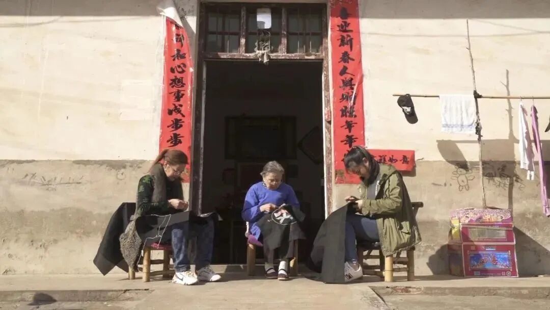 黄梅挑花女们聚在一起挑织作品