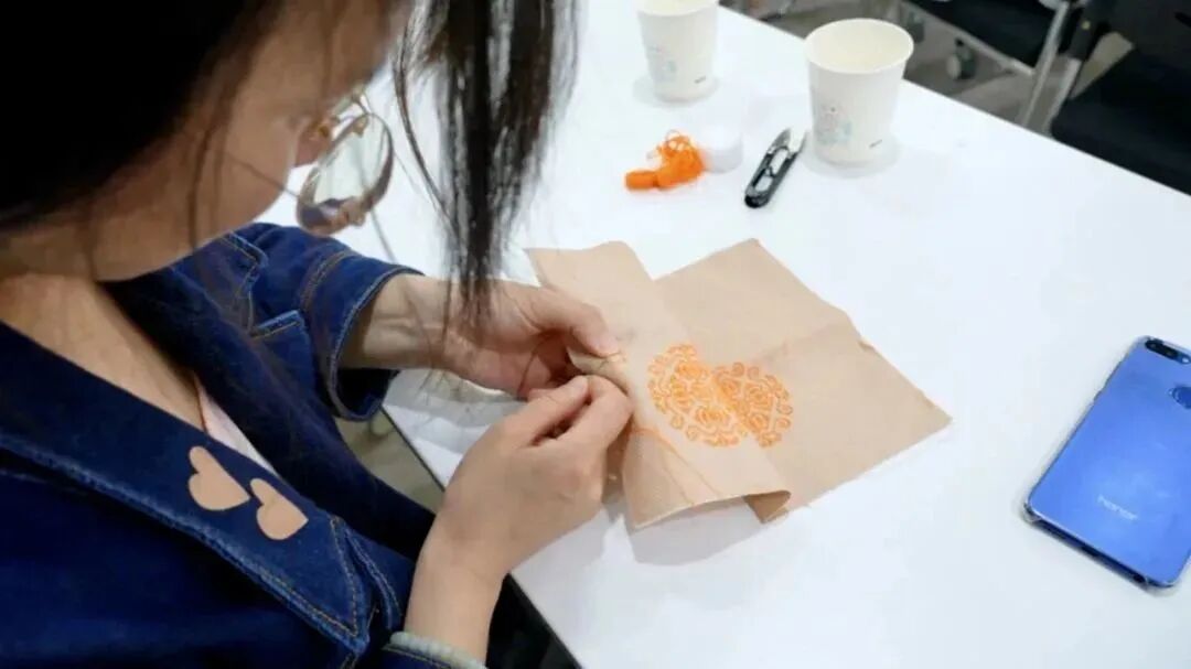 学生在黄梅挑花课堂上挑织的作品
