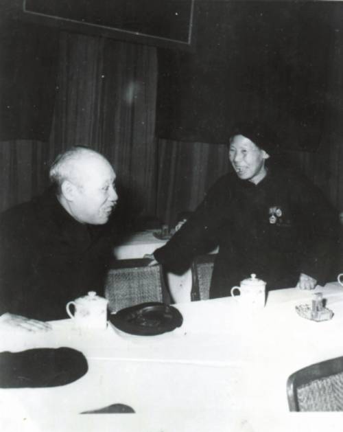 董必武与烈属、红安籍全国劳动模范徐正修交谈