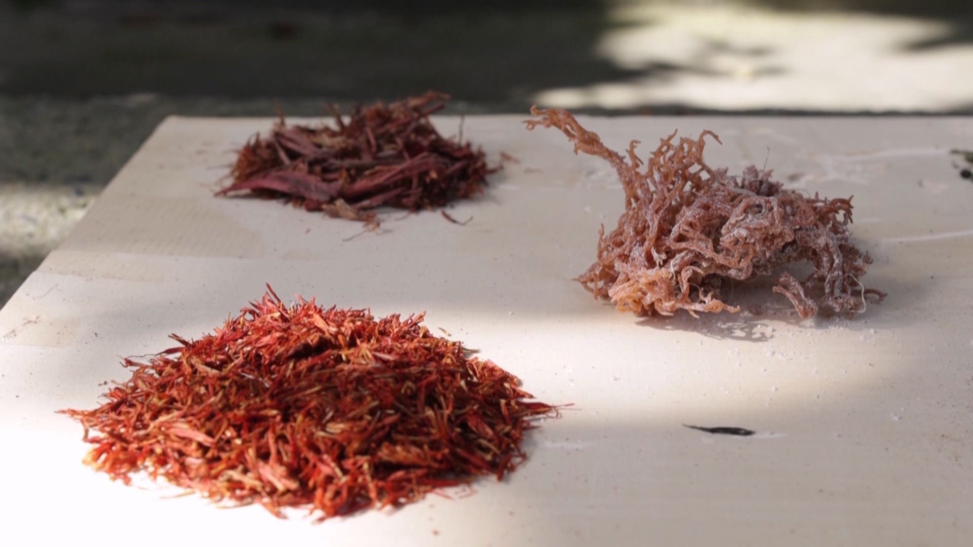 国家级非物质文化遗产老河口木版年画传承人陈洪斌介绍,《天工开物》里面就有记载,苏木煎水,入明矾、五倍子,把它们合在一起来熬制,这样就做出年画用的中国红。熬制年画的原材料都是取材于大自然,这种古法制法一直保留到现在。