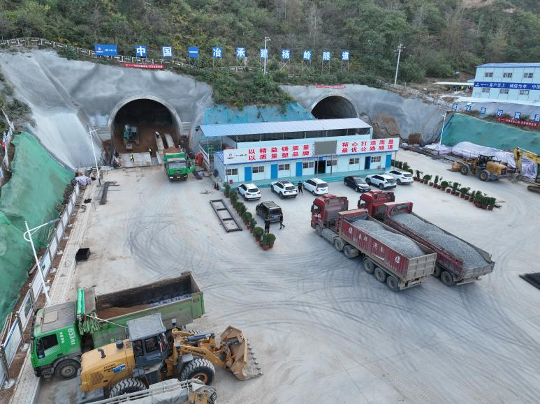 通过严密组织前期施工,项目迎来开局丰收。正式开工以来,项目控制性工程杨岭隧道已全面进洞,隧道口挡土墙工程路基开挖超50万方,工地试验室、隧道钢筋加工中心、主要纵向便道等临建工程全面完工。
